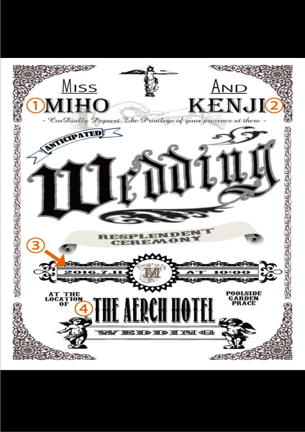 オーダーメイドにてお二方のお名前と式の日取りをお入れいたします。